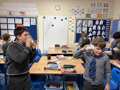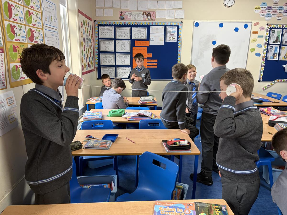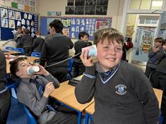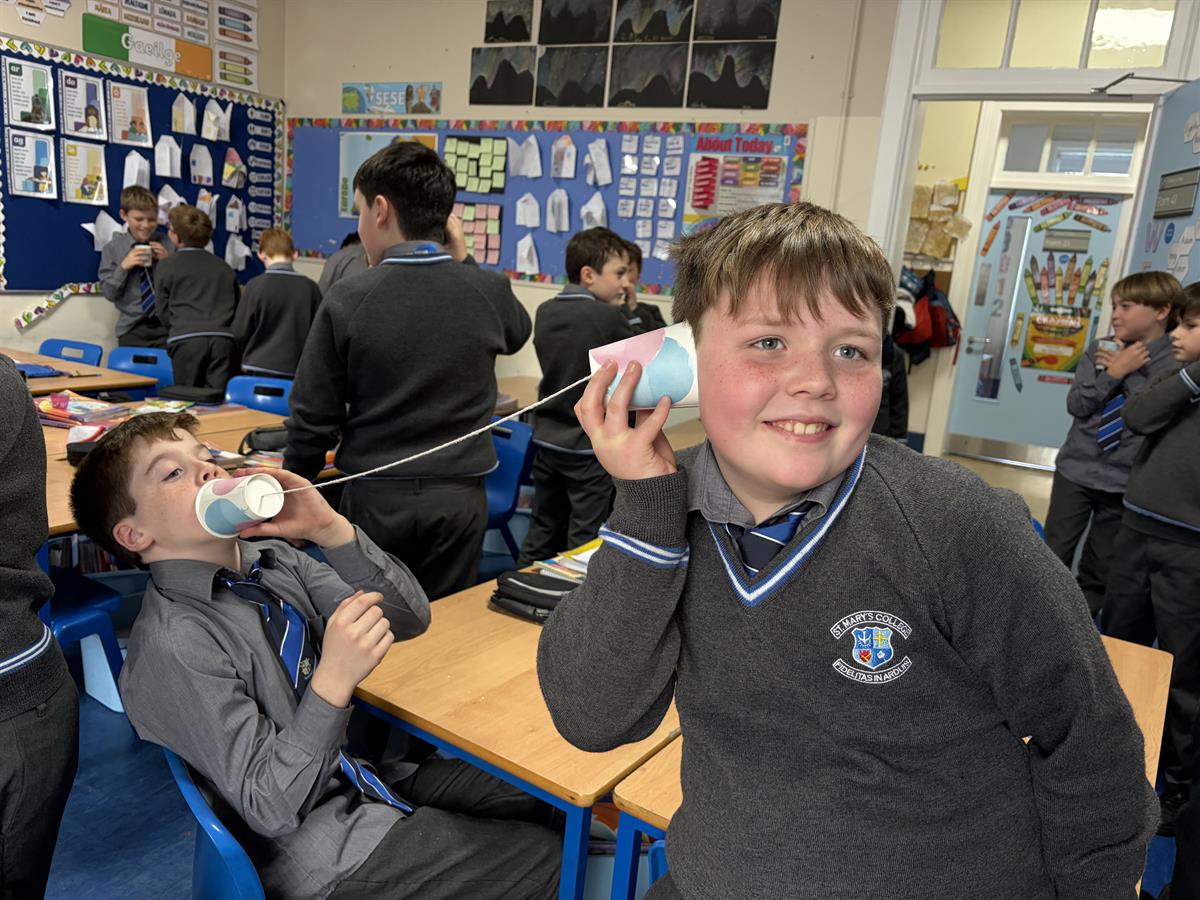 On Monday the boys explored sound through the 'String Telephone' experiment.